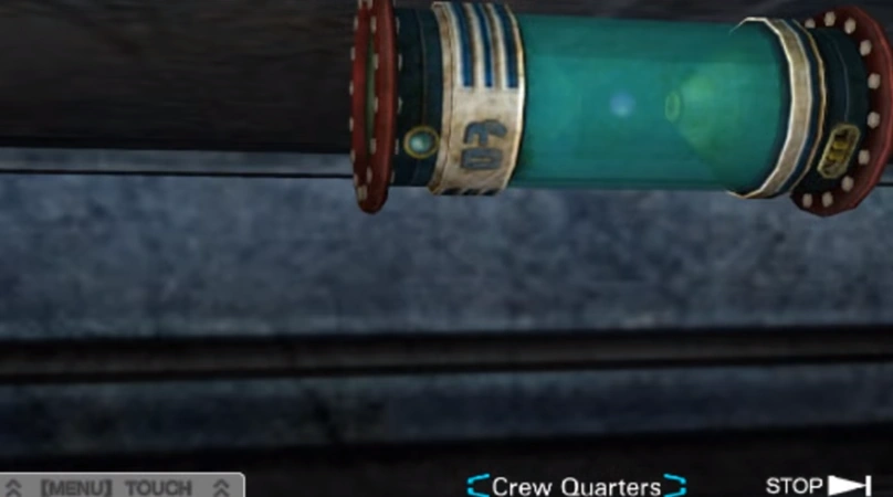 They head for the Crew Quarters with Bomb #3. Sigma plugs in the imput device and says they have 21 minutes. Sigma states that Bomb #2 is in the Control Room and Bomb #1 is in the B. Garden. Sigma asks what to do and Phi says he needs to make a jump to another timeline. Phi states that she knows Sigma didn't guess about Dio planting the bombs but that he knew it, since it occurred in another history. Phi states that they might have jumped through history's already but their memories might be damaged or something, but Phi says that remembering a little bit might be the key to survival.