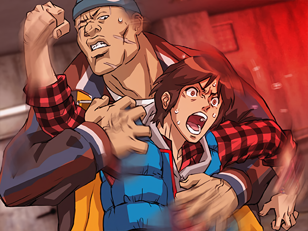 Young Junpei and Akane in 2018. Junpei is covered in bruises after being punched in the face for trying to protect a kitten from being immolated.
