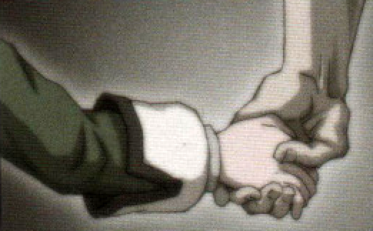 - — Junpei, giving the four-leaf bookmark to a crying Clover and comforting her in the Operating room.