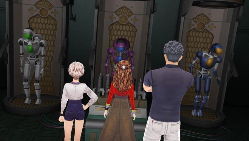 The manufacturing robots, named Alex, Betty and Charlie, are encountered in the Manufacturing room in Zero Time Dilemma by Team D.