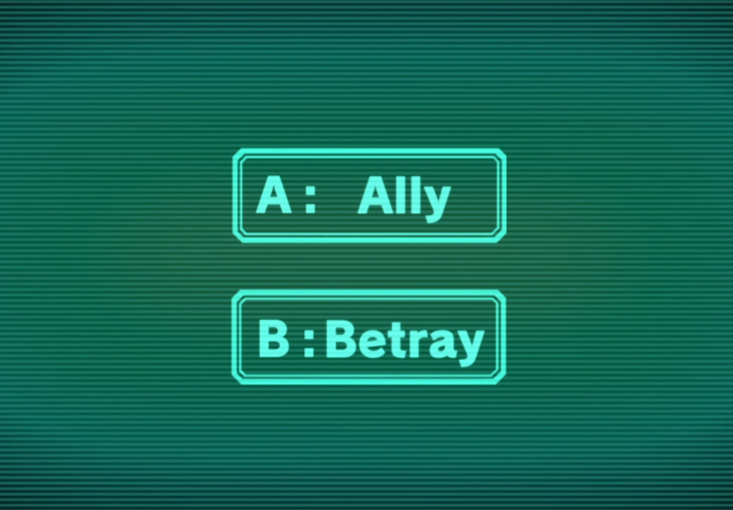 - If one party chooses to Betray and the other chooses Ally, the party who picked Betray will receive 3 BP, while the party who picked Ally will lose 2 BP.